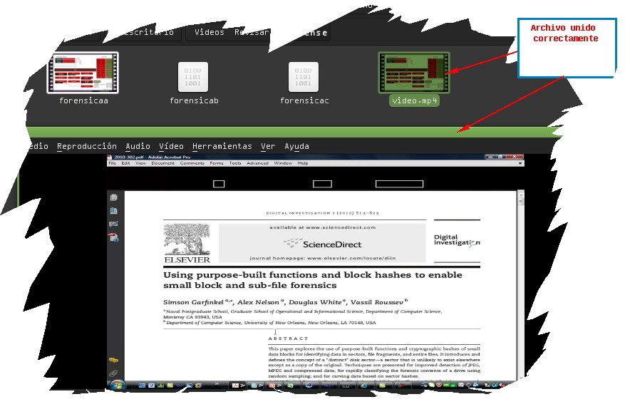 Ahora lo que procedemos es a usar el termino que usar para dividir que era forensic seguido del * la salida que sera con el nombre de video.mp4