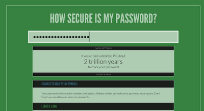 Para poder comprobar la seguridad de nuestra contraseña se tiene varios servicios, pero aqui tenemos que tener cuidado cual elegir no vaya a ser que es una carnada para poder capturar tu contraseña y tenerla en un diccionario que varios casos ya se vieron, para comprobar la seguridad de la contraseña que creamos verificamos que tan segura es en Howsecureismypassword y el resultado es el siguiente: