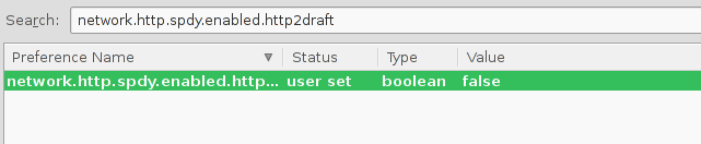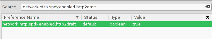 Debemos de buscar network.http.spdy.enabled.http2draft como se ve en la imagen.