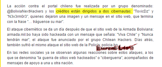 Hackers se atreven a llamarlos así? Es cierto que quizas! quizas ojo digo quizas no estoy demigrando ni poniendo en tela de juicio sus conocimientos talvez hagan uso de herramientas de automatización y hagan la magia ellas, o bien realizen los ataques explotando vulnerabilidades de manera manual eso no se sabe, pero para mi son solo niños, sin importar su edad, ni nada porque solo juegan a ver quien es capaz de mandar mas insultos, y subir su ego de juackers, esta claro que ellos demostraron falencias en los sistemas del país a todo lo malo es necesario ver el lado bueno, ademas no son hackers! por realizar un defacement, si señores se los llama defacers por si no sabian existe una categorización por decirlo así, un Hacker no hubiese realizado el deface a los portales tanto como a los de Bolivia como de Chile, mas todo lo contrario los reportaria indicando cual es la vulnerabilidad e incluso como parcharlo (solucionar la debilidad). Aclarando que no todos los hackers realizan ese proceso algunos obtienen información crítica del sitio afectado para despuer venderla o bien instalar aplicaciones maliciosas con otros fines.
