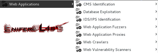 Como su nombre lo indica sección dedicada al análisis de aplicaciones web, pueden ver que tiene todo una suite específica para dicho cometido iniciando por la identificación, escaneo y terminando en la etapa de explotación de vulnerabilidades.