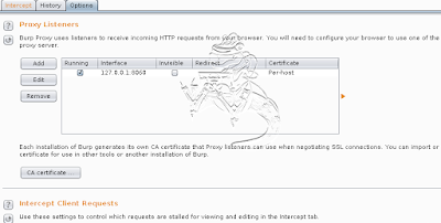 Options: Las configuraciones del proxy, como también la generación del certificado digital y configuraciones adicionales.