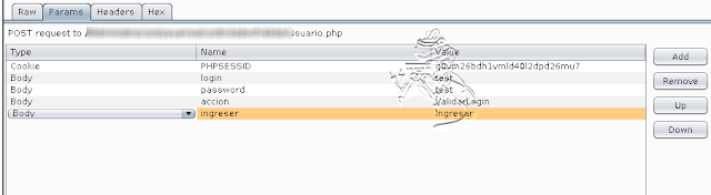 Raw: Sección que nos permite visualizar la información de la petición en texto claro la cual puede ser editada, esta visualización permite modificar dichos parámetros, en la siguiente captura de pantalla observamos dichas variables.