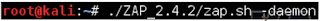Una vez ejecutado el install, tenemos que inicializar el daemon de zap.