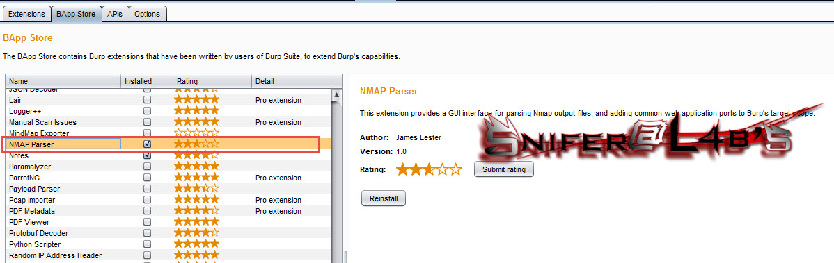 El plugin que veremos es Nmap Parser, el cual se encuentra disponible en el Bapp Store y necesita contar previamente con la configuración de Jython por si no lo vieron en este post explicamos como instalar Jython.
