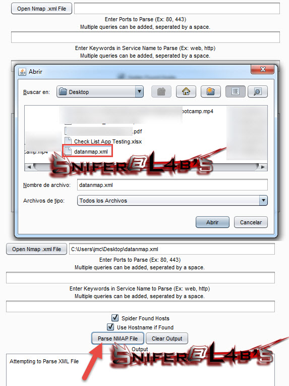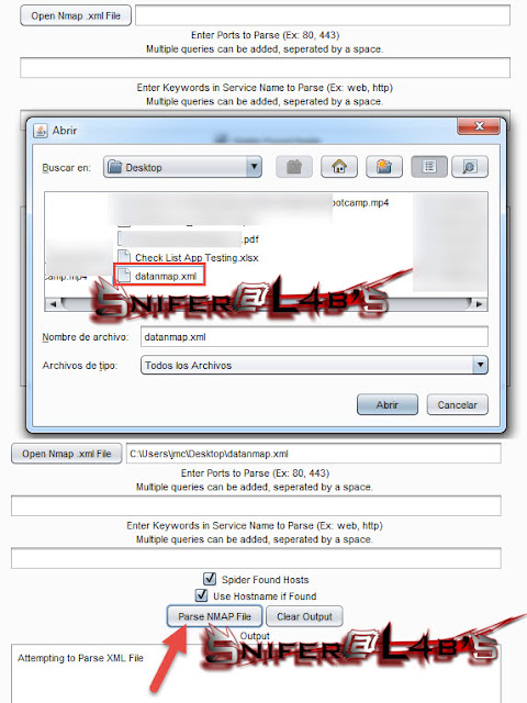 Una ve tenemos ello es posible realizar un parseo por puertos o bien por nombres de servicio asi tambien es posible hacer que se realize el reconocimiento básico del sitio identificando enlaces como se ve a continuación tenemos en la parte inferior tambien la salida de lo que se esta realizando.