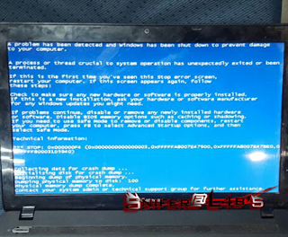 Ya por retornar a casa luego de un trabajo realizado me dispuse a conectar el ordenar a la fuente en el aeropuerto ya que tenia como 1:30 aproximadamente debido a que los vuelos se retrazarón por problemas climatológicos asi que al encender el ordenador, pumm el maximo recibimiento un lindo pantallazo azul de entrada como lo ven en la captura siguiente.