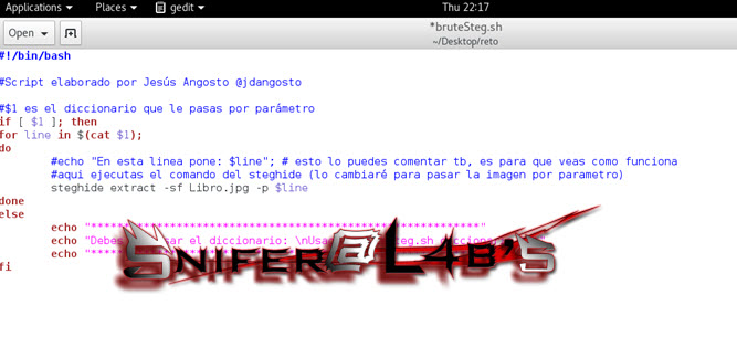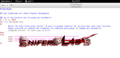 Tras esto solo quedaba sacar el contenido de la imagen Libro.jpg, y gracias a un script en bash que me proporcionó @jdangosto y a una pista que puso Snifer por el grupo de Cápsulas SI de que usáramos la herramienta Cewl, tras un tiempo de crawling a la url del reto obtuve un diccionario con el que poder crackear la contraseña del archivo, la única pega era que el script no paraba cuando encontraba la pass válida y tampoco la almacenaba por tanto sigo sin saber cuál es pero lo importante es que saqué la flag 2.