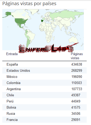 Se que estos datos no son relevantes para algunos pero vamos que es algo que llama la atención, ahora por ultimo tenemos a los paises que mas ingresan al sitio por vista de Página esta estadistica puede ser algo tonta o boba, ya que sabemos la existencia de Proxy’s VPN y demas trajes, pero vamos que en esta oportunidad y anual es la única vez que sacamos las estadistica de todo el contenido del Blog.