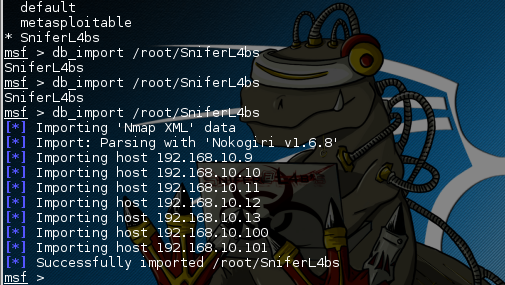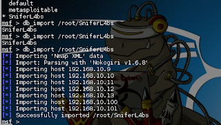 Con esto ya vemos que es posible importar los resultados de un barrido con NMAP para usarlos desde Metasploit, lo cual veremos esta semana e iremos aprendiendo mas del potencial de este framework.
