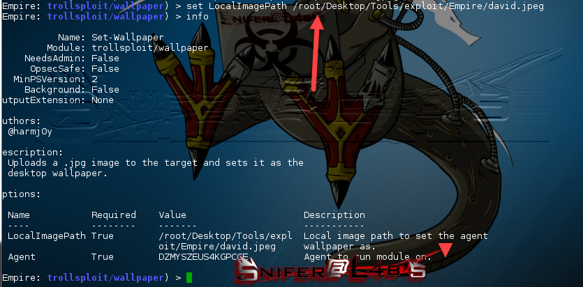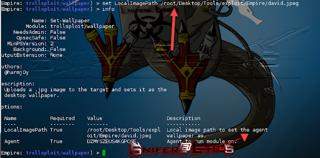 Empire: trollsploit-wallpaper) > set LocalImagePath /root/Desktop/david.jpg