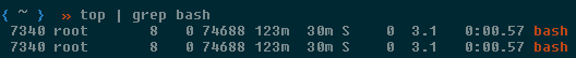 top nos mostrará los procesos activos, mientras que con grep podemos buscar un string en el resultado, que en éste caso será bash.