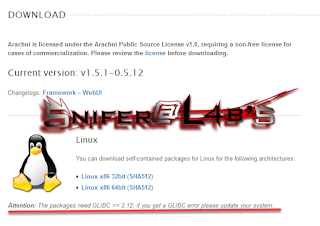 Entonces procedemos a realizar la instalación, cada sistema operativo si cuenta en sus repositorios arachni es posible instalarlo, cabe resaltar que esto nos permite en Kali, y demás distribuciones incluso algunas ya cuentan con el instalado, solo basta con ejecutar en la terminal Arachni y ver si lo tienen, en el caso de contar puedes instalarlo respectivamente o bien como este caso procedere a descargar desde la página oficial, con lo cual el paquete en este caso según la arquitectura ya sea de 32 o 64 bits, y tenemos que tomar atención al paquete GLIBC.