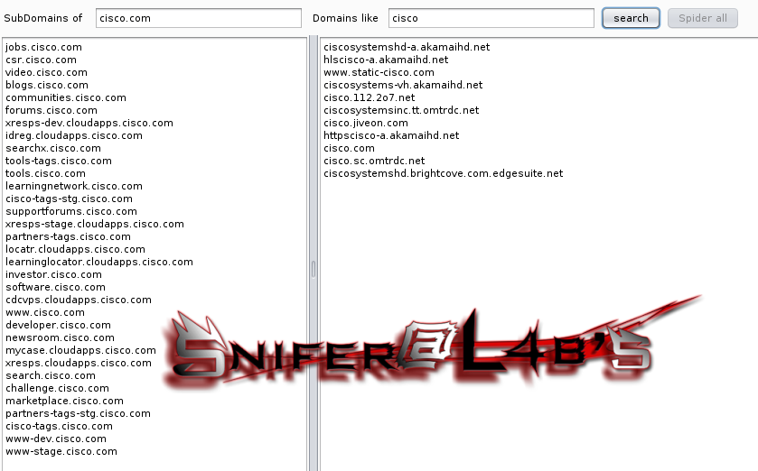 Tenemos que ingresar el dominio en el primer campo y despues dar el click en Search para obtener los sub-dominios.