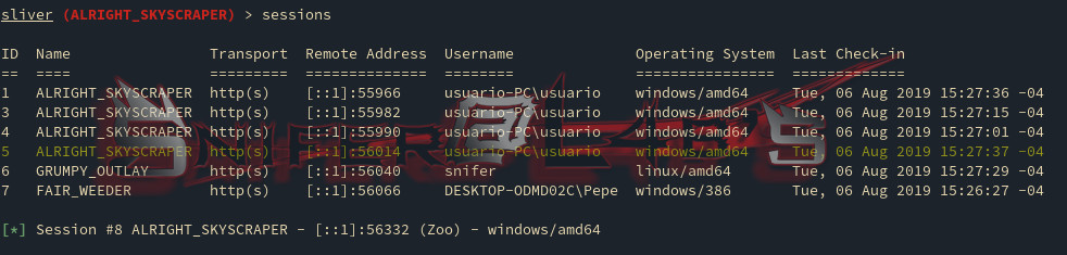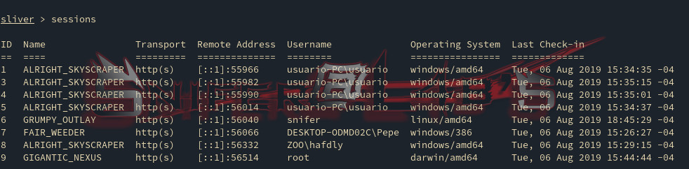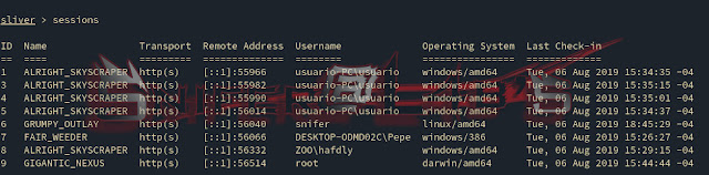Las opciones que tenemos con el Sliver (equipo infectado) en esta entrada veremos lo principal.