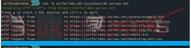 snifer@Kvothe$ ssh -R loquesea:80:localhost:80 serveo.net