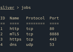 Con Sliver tenemos la opcion de ejecutar 4 diferentes listeners DNS, HTTP, HTTPS y MTLS que son los que se ponen en la escucha en los puertos respectivos.