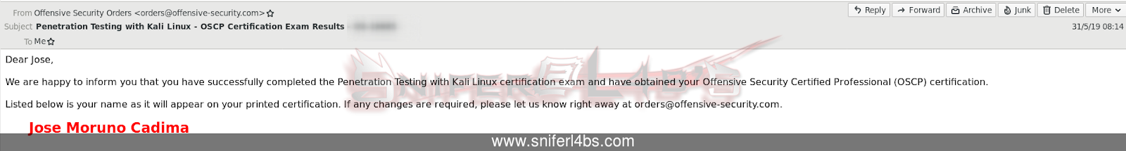 Oficialmente soy OSCP desde el mes de Mayo después de luchar por esta certificación es la que mas carino he llegado a tener por el conocimiento que me brindo y el esfuerzo que realice para lograrlo.