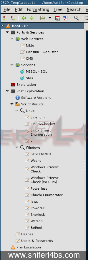 Como lo mencione previamente use CherryTree para la documentación tanto del lab como durante el examen, teniendo la siguiente estructura para cada maquina.
