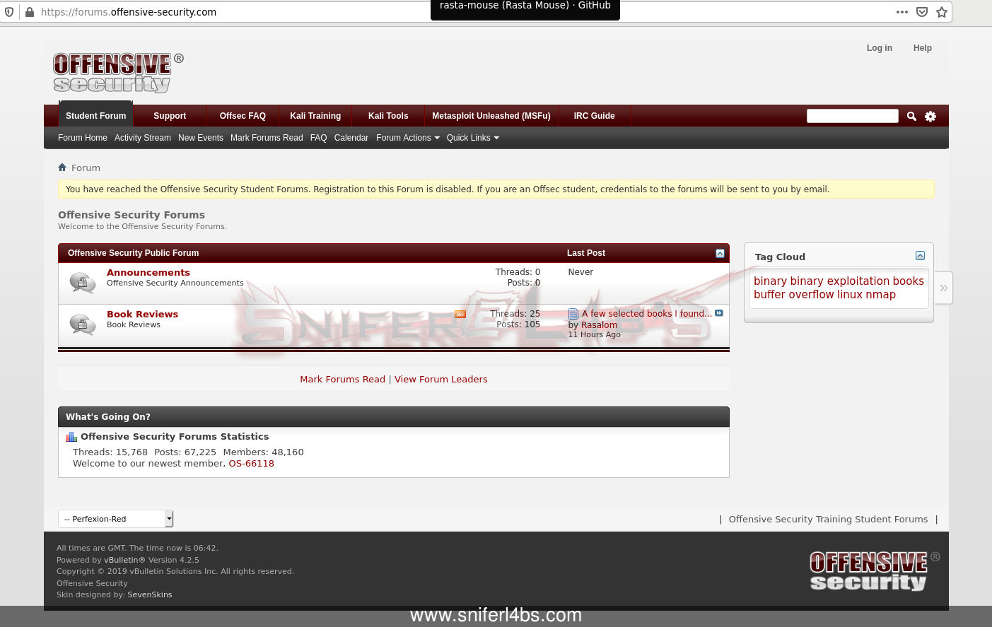 Para el tercer intento mande al diablo la maquina que nos da Offensive Security que por cierto es un Kali de 32 bits con todo configurado y listo para utilizarlo en el laboratorio como también en el examen, al tirarlo use mi maquina principal que esta con Arch.