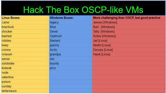 A continuación se tiene un listado de máquinas que encontraras para entrenarte en el OSCP eso sí necesitas la cuenta VIP que son máquinas retiradas.
