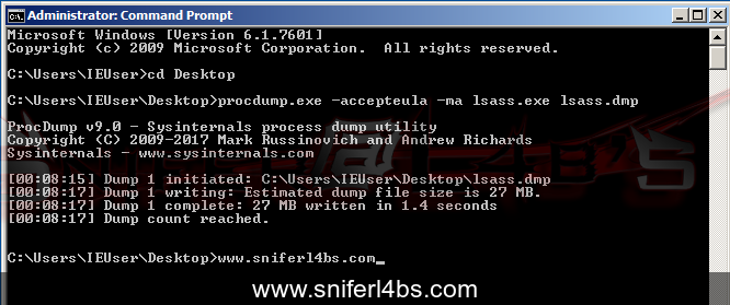Necesitamos contar con el dumpeo del proceso para que el mismo sea tratado con pypykatz, el comando a ser utilizado es: