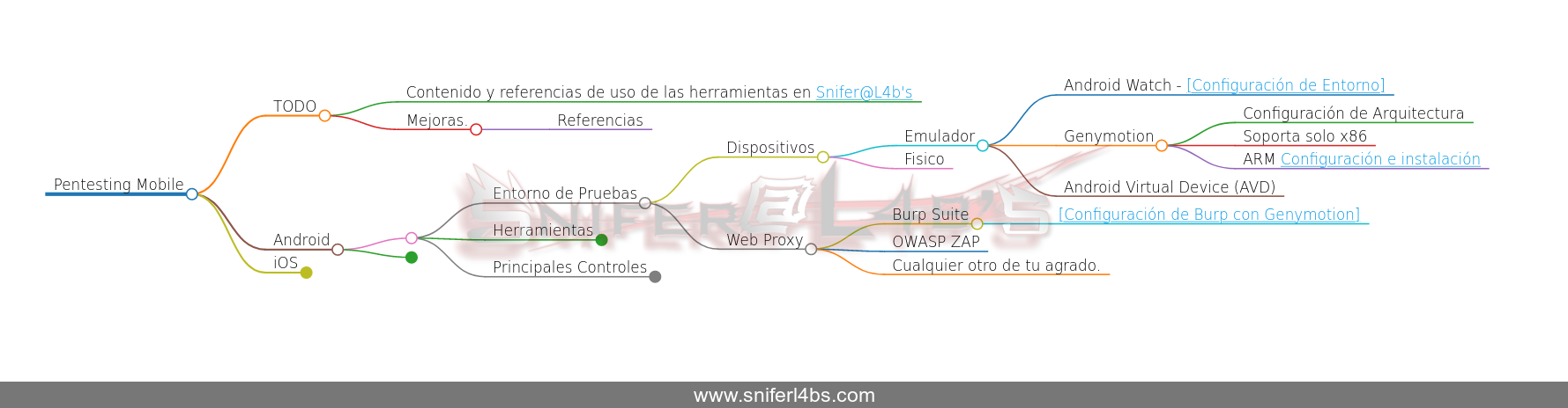 Además se tendrá un mapa mental en el repositorio de Github en cada rama o control que se ira adicionando formara parte de una entrada en el blog, teniendo las referencias necesarias para cualquiera que se sume a esta área.